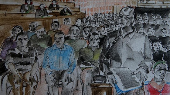 İzleyicilerin tepkiyi sürdürmesi üzerine güvenlik güçleri, izleyiciler ile sanıklar arasında barikat oluşturarak salonu boşalttı.