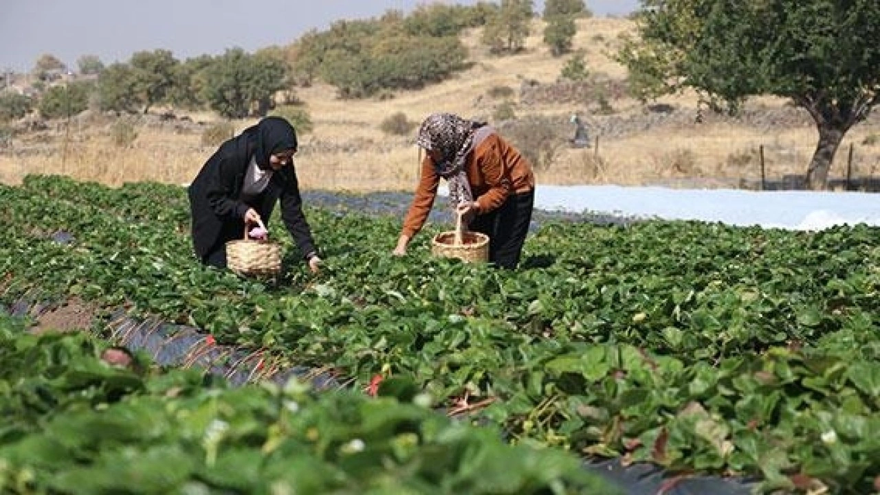 Kayseri'de Erciyes Dağı eteklerindeki Hacılar ilçesinde yaşayan gelin görümce, atalarından miras kalan atıl durumdaki topraklarda çilek yetiştiriyor.