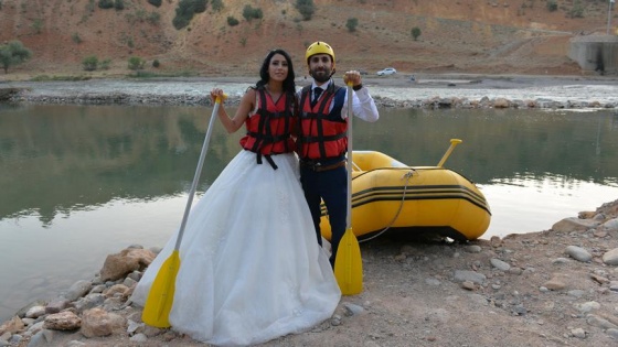 Damat Yıkılmaz rafting sonrası AA muhabirine yaptığı açıklamada, düğün öncesi Munzur Çayın'da rafting yaparak kentte bir ilke imza attıklarını söyledi.