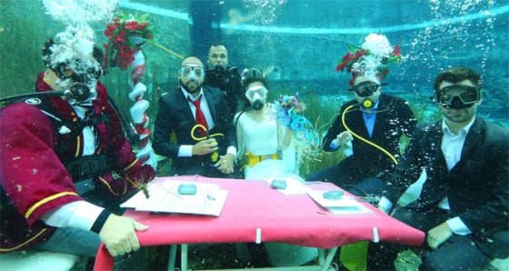 Bununla ilgili hemen hazırlıklara başlandı ve nikah masası, sandalyeler, çiçekler üzerilerine ağırlık bağlanarak suyun altına indirildi. Suyun altında tören alanının hazırlanmasının ardından ise, dalış eğitmeni Ömer Faruk Özen gözetiminde dalgıç ekipmanlarını takan damat Volkan Türk, gelin Derya Ateş, şahitler ve Çifteler Belediye Başkanı Metin Özen suyun altına indi. Dalış eğitmeni Ömer Faruk Özen gözetiminde Çifteler Belediye Başkanı Metin Özen tarafından kıyılan nikah sonrası Volkan ve Derya çifti dünya evine girmiş oldu.