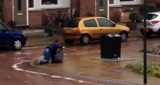 Hollanda’da amatör kameraya, gerçek bir çevrecinin buz tutmuş zemin üzerindeki çöp atma mücadelesi yansıdı. Çöp bidonuna ulaşmak için uzun süre mücadele eden adam, en son emekleyerek amacına ulaştı. Çöpünü bidona atan adam, bu kararlı mücadelesiyle çevrecilerin gönlünde taht kurdu.
