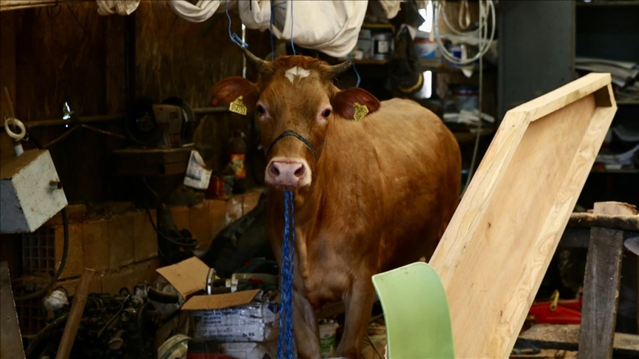 Yaklaşık 20 dakika suda kalan kurbanlık, karaya çıkarak barınaktaki bir balıkçı kulübesine girdi.