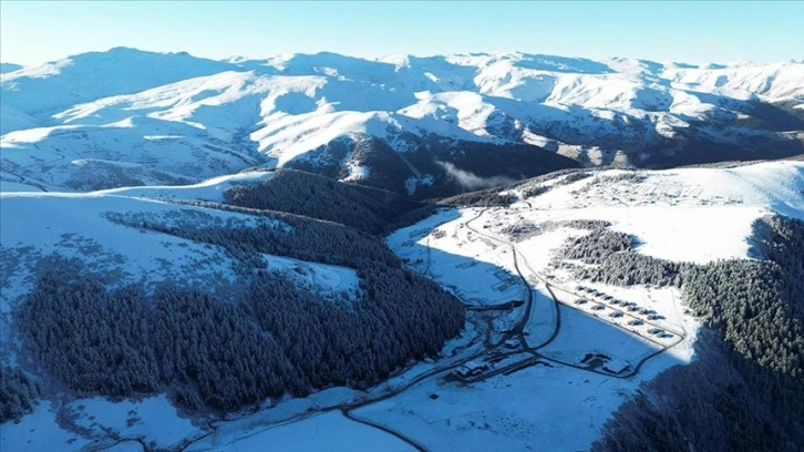 Giresun'un 1700 rakımlı Kümbet Yaylası, kar yağışı sonrası beyaz örtüyle kaplandı.