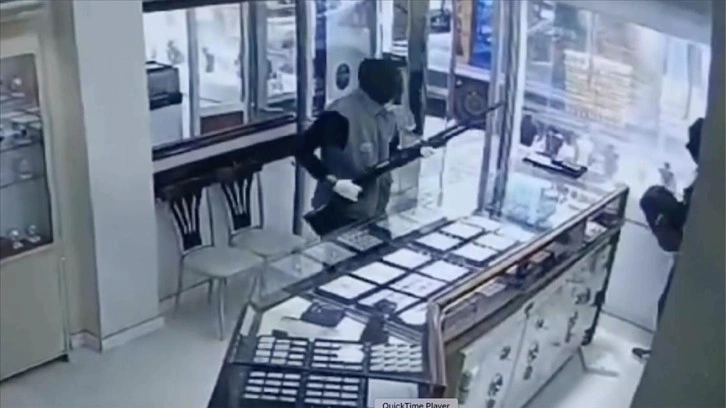 İlçe merkezindeki kuyumcuda, biri maskeli ve tüfekli olmak üzere iki kişi soygun gerçekleştirdi.