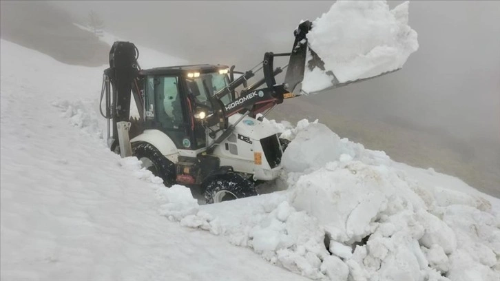 Giresun'da kar nedeniyle kapalı yayla yollarını ulaşıma açmak için çalışma yapılıyor.