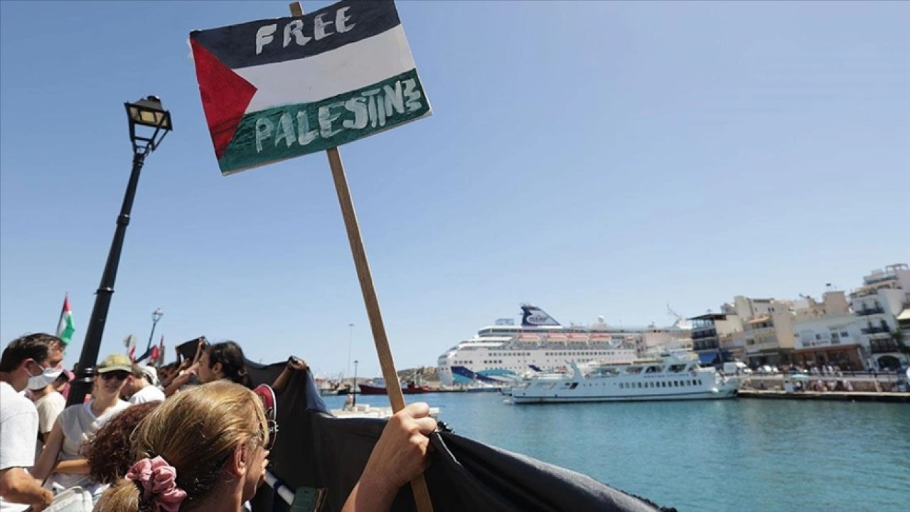 İsrailli turistleri taşıyan kruvaziyer gemisi, yolcularını indirmek üzere geldiği Girit Adası’nda Filistin’e destek vermek isteyen ve İsrail'in Filistin'e yönelik saldırılarını kınayan eylemcilerin protestosu ile karşılaştı.