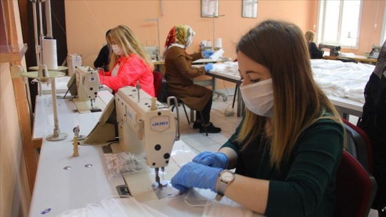 Kayseri'de büyük çoğunluğu gönüllü kadınlardan oluşan 65 kişi, yeni tip koronavirüs (Kovid-19) salgınıyla mücadeleye destek olmak amacıyla "imece" usülü maske üretiyor.