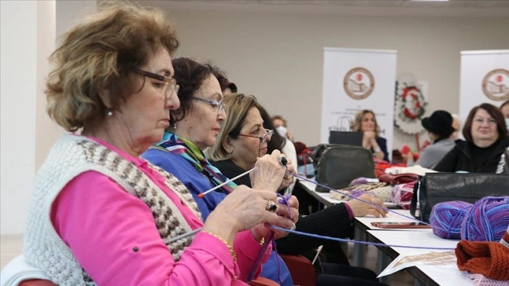 İplerini ve şişlerini de yanlarında getiren kadınların ördüğü atkı ve bereler bir haftada tamamlanacak ve ihtiyaç sahibi çocuklara yılbaşı öncesinde ulaştırılacak.