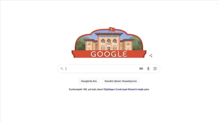Kullanıcıların yönlendirildiği sayfada, "Bugünkü Doodle’da Cumhuriyet Bayramı'nı ve Türkiye Cumhuriyeti'nin 100. Yılını kutluyoruz" ifadeleri yer alıyor.