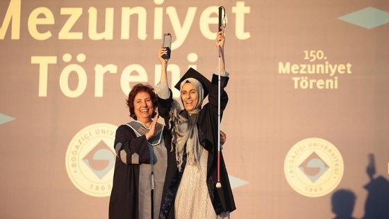 Görme engelli Şeyma Sevim Saleh, Boğaziçi Üniversitesi Eğitim Fakültesini 4 üzerinden 3.93 not ortalaması ile tamamlayarak fakülte birincisi oldu.
