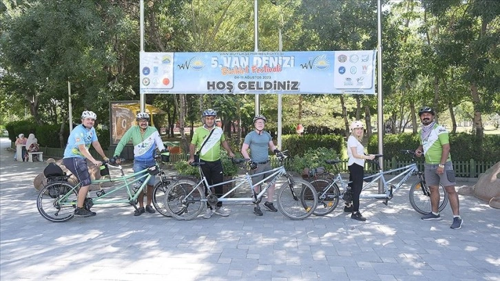 Festivale katılmak için 2 kişilik tandem bisikletleriyle Van'a gelen Eşpedal Derneği üyesi görme engelli 3 kişiyle onlara eşlik eden bisiklet tutkunları, diğer sporcularla pedal bastı.