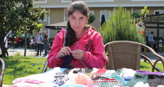 Engelsiz Aydın etkinliğinde yapılan sergide en çok görme engeli olanların yaptıkları el örgüsü işler dikkat çekti.