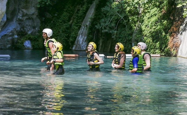 Antalya ve Kemer'i ziyaret edenler, profesyonel rehberler eşliğinde yaklaşık 750 metrelik kanyondan geçerek manzarayı izliyor. Doğayla iç içe olmanın tadını çıkaran turistler, yazın sıcaklığı 12 ila18 derece arasında değişen suda serinleme imkanı buluyor.