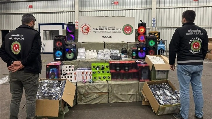 Kocaeli'de de gerçekleştirilen operasyonda ise beyan edilmeyen 9 bin 413 hoparlör, 4 bin 550 manyetik akıllı şarj cihazı, 128 bin kablolu kulaklık, 5 bin AUX kablo,11 bin 960 UXB kablo, 2 bin telefon tutucu, 1500 mikrofon,13 bin 980 kamera koruyucu cam, 218 bin 320 karton kutu, 2 bin 390 MP3 player olmak üzere toplam 497 bin 547 kaçak eşya ele geçirildi.