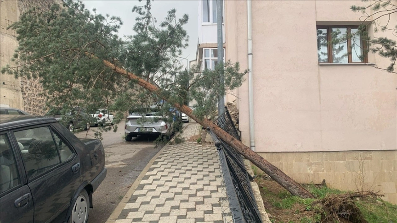 Şehir merkezinde etkili olan fırtına, İnönü Mahallesi'nde bulunan Orman İşletme Müdürlüğü bahçesindeki ağacın yola devrilmesine neden oldu.