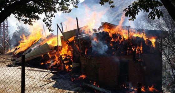 Ahırda bulunan hayvanlar yangının ilk anlarında tahliye edilirken, kuru otların alev almasıyla dumanlar bir anda gökyüzünü sardı.