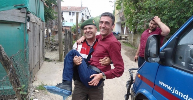 Sinop’ta bir engelliyi kucağında taşırken objektife yansıyan bir jandarma uzman çavuşun fotoğrafı, günün karesi oldu.