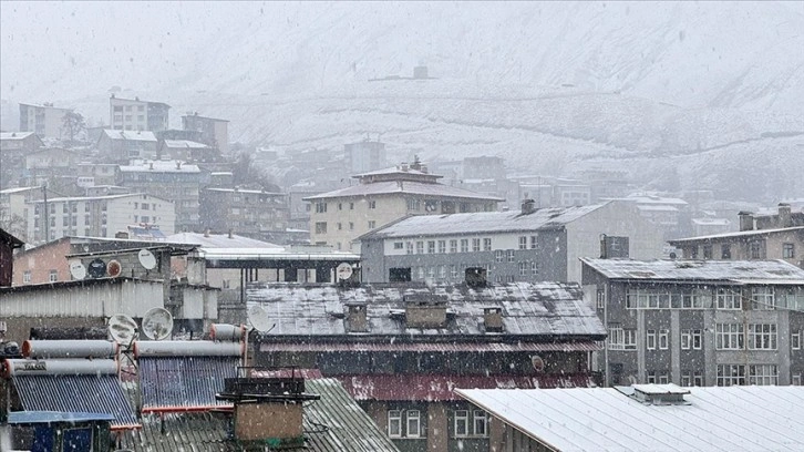 Yüksekova'da etkili olan kar nedeniyle ilçe merkezi beyaza büründü.