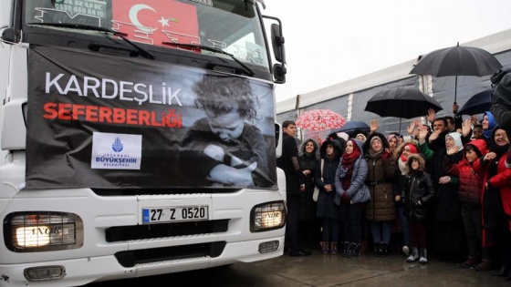 Başbakan Binali Yıldırım'ın eşi Semiha Yıldırım, bugün 200'ü aşkın yardım tırının yola çıktığını belirterek, "Bu kervan sadece gıda, sağlık ve insani yardım taşımıyor, tarihten bu yana gelen kardeşliğimizin hep devam edeceği mesajını da taşıyor. Çünkü bizim için Halep neyse, Antep de odur. Bizim için Hamalı bir annenin yardım çağrısı neyse, Kilisli bir annenin yardım çağrısı da odur." dedi.
