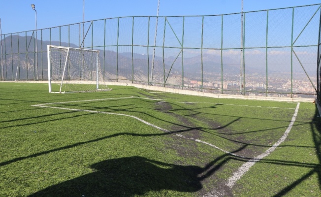 Açık halı sahanın duvarlarında da toprak kayması nedeniyle çatlaklar meydana gelirken, heyelanın devam etme ihtimalinin yüksek olduğu düşünülüyor.