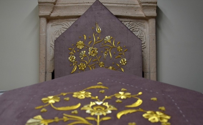 Kütahya Olgunlaşma Enstitüsünde, Osmanlı hanedanına ait türbelerin sanduka örtülerinin yenilenmesi amacıyla başlatılan proje kapsamında, puşideler aslına uygun şekilde aylar süren çalışmayla ilmek ilmek işlenip hazırlanıyor.
