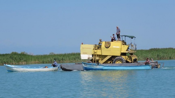 Balıkçı İbrahim Erdoğan da ağabeyinin ekim yaptığı adaya biçerdöverin su üzerindeki nakli sırasında tekneleriyle destek verdiklerini belirtti.