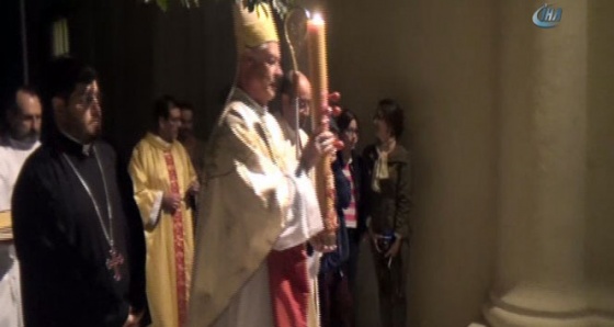 Katolik Kilisesi'nin bahçesinde başlayan ayin de ışıkların yakılmasına izin verilmezken paskalya mumu yakıldı, paskalya gecesi ateşi kutsandı. Duaların edildiği ayin daha sonra Kilise içerisinde devam ederken yine ışıklar yakılmadı ve mum ışığında ilahiler söylenip dualar edildi.