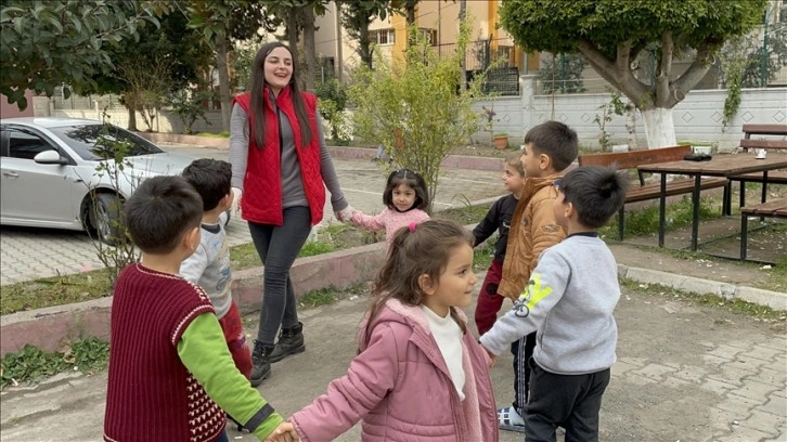 Gençlik ve Spor Bakanlığına bağlı psikososyal destek ekibi, Numuneevler Mahallesi'ndeki barınma merkezinde kalan ailelerin çocukları ile bir araya geldi.