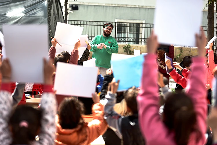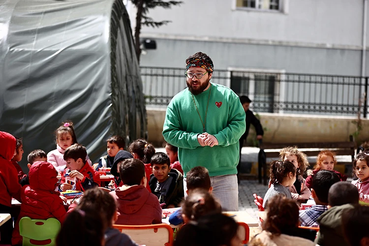 Arman, daha sonra ne yapabileceğini düşündüğünü dile getirerek, "Aklıma geçmişten beri yaptığım bir etkinlik geldi. Yıllardır çocuklarla yetişkinlerle çizim etkinlikleri yapıyorum. Burada da yaptığım şey bu. Tanıdığım şirket sahiplerinden dostlarımdan resim malzemesi desteği aldım ve bölgeye geldim. Çocukları köy köy dolaşarak buldum. Merkezde etkinlikler yapılıyor ama köylerde pek bir şey yapılmıyor. Çocuklarla çizim etkinlikleri yapıyorum. Onların hayal güçlerini öğrenmeye çalışıyorum." diye konuştu.
