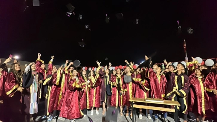İskenderun'daki okulları Kahramanmaraş merkezli depremlerde ağır hasar alan ve eğitimlerine NATO tarafından kurulan çadır kentteki Yunus Emre Ortaokulu'nda devam eden öğrenciler için mezuniyet töreni düzenlendi.
