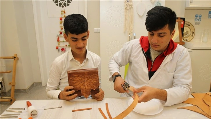 Öğrencilerden Mustafa Özbek de okuldaki atölyede kendini çok iyi hissettiğini ve burada, su kabaklarından lamba, derilerden çanta, bileklik ve kolye yaptığını belirtti.
