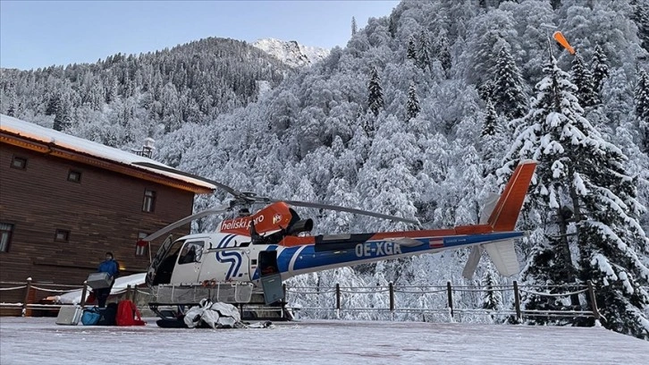 Helikopterli kayak (heliski) sporunun Türkiye'deki merkezi haline gelen Kaçkar Dağları'nda 8 Ocak'ta başlayacak ve 15 Nisan'a kadar devam edecek faaliyetlerde görev yapacak 3 helikopter, Ayder Yaylası'na ulaştı.