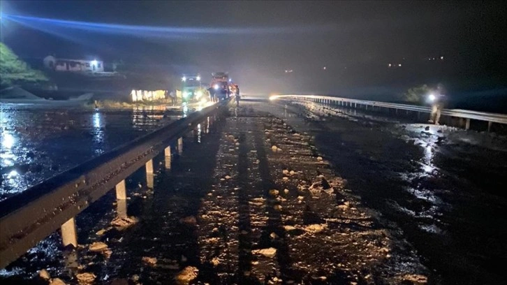 Kara yoluna gelen taş ve balçık nedeniyle yolda kalan bir aracı kurtaran ekipler, yaklaşık yarım saatlik yoğun bir çalışma ile kara yolunu tekrar ulaşıma açtı.