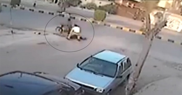Pakistan’da bir otomobilin ön aynasını çalan şahıs, arkadaşının motosikletine atlayıp kaçmak üzereyken film sahnelerini andıran bir hamleyle araçtan aşağı çekildi. Olaya şahit olan kişi, hırsızı darp ederken, ona çevredekiler de eşlik etti. Motosikletli kişi ise kaçtı.