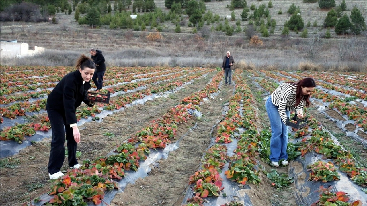 Bu yıl şubat ayında diktiği çileklerden yaz aylarından itibaren ürün almaya başlayan Peköz, aralık ayının ortasında bile ürün almaya devam ediyor.