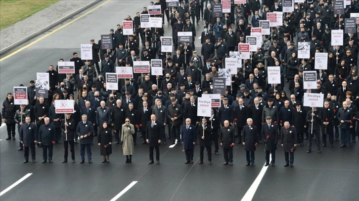 Azadlık Meydanı'nda başlayan, devlet erkanının yanı sıra yüzlerce kişinin katıldığı yürüyüşte, katliam kurbanlarının fotoğraflarının bulunduğu pankartlar taşındı. Ana Feryadı Anıtı'nda sona eren yürüyüşün ardından düzenlenen törende Cumhurbaşkanı Aliyev, anıta çelenk bıraktı.