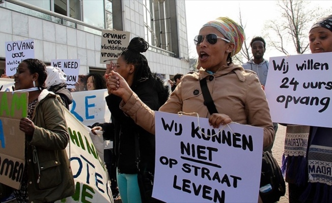 AMSTERDAM (AA) - Hollanda'nın başkenti Amsterdam'da sığınmacılar, barınma sorununa dikkat çekmek için gösteri yaptı.