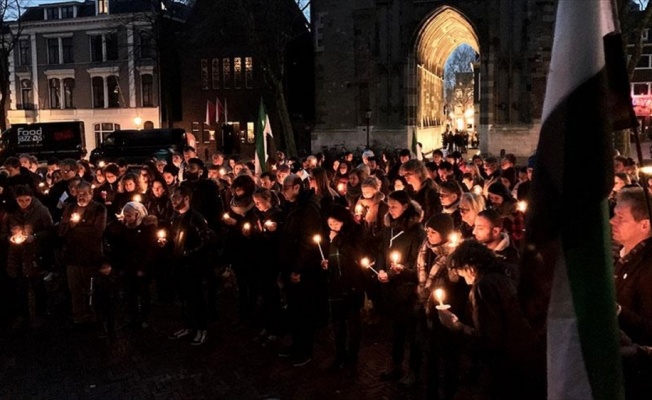 Suriye Komitesi tarafından Utrecht, Amsterdam, Arnhem ve Nijmegen'de düzenlenen "Suriye için ışık" adlı etkinliğe katılanlar, ellerindeki mumlarla dört kentte aynı saatte saygı duruşunda bulundu.
