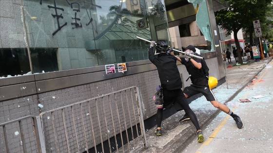 Çin'in Hong Kong Özel İdari Bölgesi yönetiminden yapılan açıklamada, polisin göz yaşartıcı gaz ve tazyikli suyla müdahale ettiği, resmi binalara molotofkokteyli atan, trafiği tıkayan ve ateş yakan göstericilerin başvurduğu şiddetin, sorunları çözmeye çalışmaktan ziyade topluma zarar vereceği belirtildi.