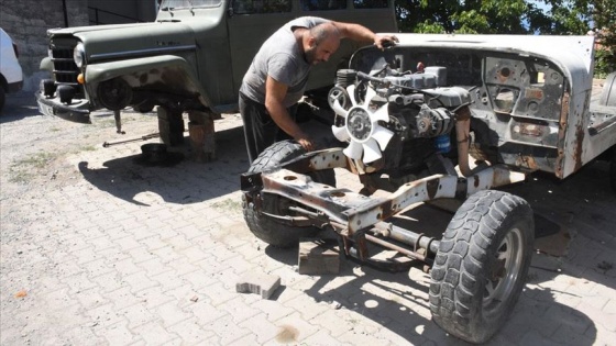 Zonguldak'ın Kozlu ilçesinde oto tamir ustası Yunus Kaptan, hurdaya ayrılmış veya modifiye yapılmak üzere atölyesine getirilen eski arazi araçlarına adeta yeniden hayat veriyor.