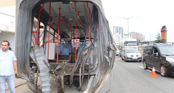 Trabzon’da karayolunda seyreden körüklü belediye otobüsü ortadan ikiye ayrılarak kaza yaptı. Kazada 3 kişi yaralandı.
