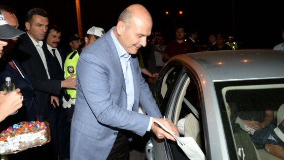 İçişleri Bakanı Süleyman Soylu, Çorum'un Osmancık ilçesinde trafik denetlemesine katılarak vatandaşlarla bayramlaştı