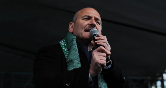 CHP Genel Başkanı Kemal Kılıçdaroğlu'nu da eleştiren Soylu, "Kılıçdaroğlu şunu yapmak istiyor, 299 tane PKK ve HDP iltisaklıyı CHP, İYİ Parti ve Saadet Partisi listelerinden belediye meclis üyesi ve il genel meclis üyesi yapıyorlar. Adamın biri diyor ki, 'Kürdistan'da biz kazanacağız.' Kürdistan neresi Allah aşkına. Ülkemizde Kürdistan diye bir yer var mı? 'AK Parti ve MHP'ye kaybettireceğiz' diyor. 'İstanbul'da, Ankara'da, Adana'da, İzmir'de, Bursa'da, Muğla'da, Aydın'da, Konya'da verilen bütün oylar Cizre'ye, Silopi'ye güç katacak' diyor. Dün akşam bir televizyon programında da Sezai Temelli diye HDP Eş Genel Başkanı var, yüzüne bakıyorsun bir ifade yok, bir kukla. Diyor ki, 'İstanbul'da İmamoğlu'na, Ankara'da Mansur Yavaş'a oy vereceğiz, alacağımızı da seçimden sonra alacağız.' Sözleme imzalamış, senet imzalamışlar yani. Bu senedin altında kimlerin imzası var? Bu senedin altında FETÖ'nün, PKK'nın, Saadet Partisi Genel Başkanı Temel Karamollaoğlu'nun imzası var, İYİ Parti Genel Başkanı Meral Akşener'in imzası var. Bu senedin altında Gezi olaylarını kim yapmışsa, 17-25'i kim yapmışsa, 6-7 Ekim'i kim yapmışsa, 15 Temmuz'u kim yapmışsa, Türkiye düşmanlarının imzası var" şeklinde konuştu.
