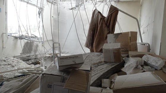 Suriye'de İdlib gerginliği azaltma bölgesindeki hastane, Beşşar Esed rejimine ait helikopterden düzenlenen varil bombalı saldırı nedeniyle hizmet dışı kaldı.