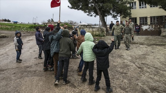 Sınır okullarında eğitim gören öğrenciler de askeri araçların geçişi sırasında Türk bayrağı açıp "En büyük asker bizim asker" dedi.