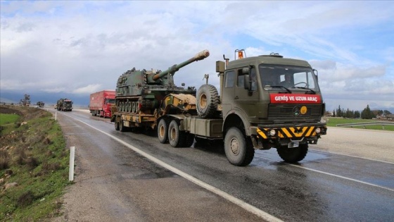 Burada askeri personel tarafından tırlardan indirilen obüsler, geniş güvenlik önlemleri altında İdlib'deki gözlem noktalarına yönlendirildi.