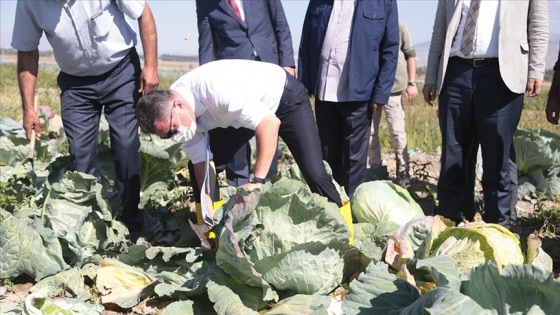 Aziziye ilçesine bağlı Söğütlü Mahallesi'ndeki lahana tarlasında hasat etkinliğine katılan Vali Okay Memiş, bazı lahanaların hasat ve temizliğini yaparak üreticilere bol kazançlar diledi.