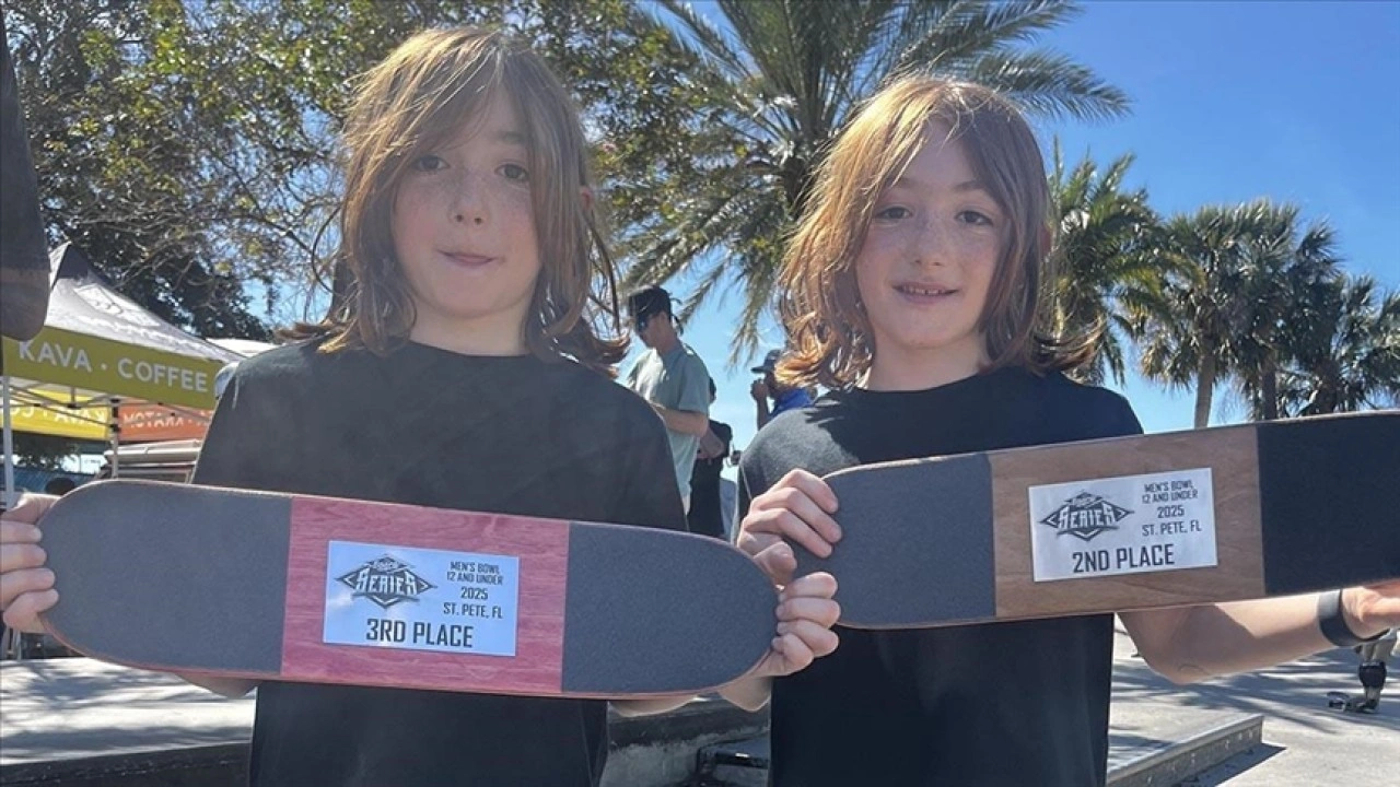 ABD'de düzenlenen yarışmada ikiz kaykaycılar Efe ve Ege Tok, 12 yaş altı çanak kategorisinde 2'nci ve 3'üncü oldu.