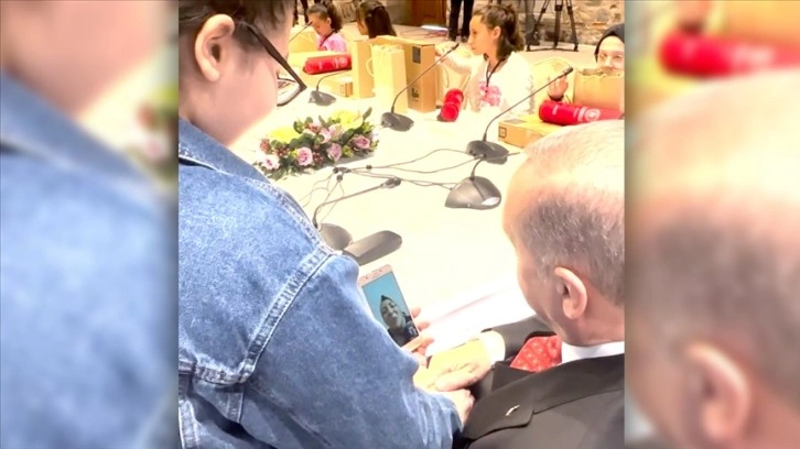 Yağmur'un annesinin Hatay'ın Kırıkhan ilçesinde öğretmenlik yaptığını söylemesi ve sevgilerini iletmesi üzerine Erdoğan, teşekkür etti.