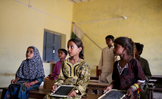 Pakistan’da yoksul bölgelerdeki öğrenciler yıllardır taşla teneke levhalara yazarak okumayı öğreniyor.